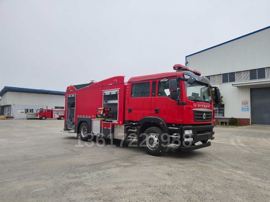 汕德卡7噸水罐消防車采用中國重汽集團濟南商用車ZZ5206N471GF5底盤改裝而成。整車由消防員乘員室和車身兩大部分組成,乘員室為原裝雙排,可乘坐2+4人,該車為外露罐結構,車身前部為器材箱,中部為罐體,后部為泵房。載液罐體為優質碳鋼,內部噴涂環氧底漆及環氧瀝青漆,與底盤采用彈性連接,載水量7150kg,裝備了上海雄真消防設備有限公司生產CB10/60-XZ型常壓消防泵,額定流量60L/S,車頂安裝成都威斯特消防機械有限公司生產的PL8/60W型車用消防炮。該車最大的特點是載液量大、操控性好、維修簡便。可廣泛應用于公安消防隊、廠礦企業及社區、碼頭等場所,撲救大型油類火災和一般物質火災。 | |||