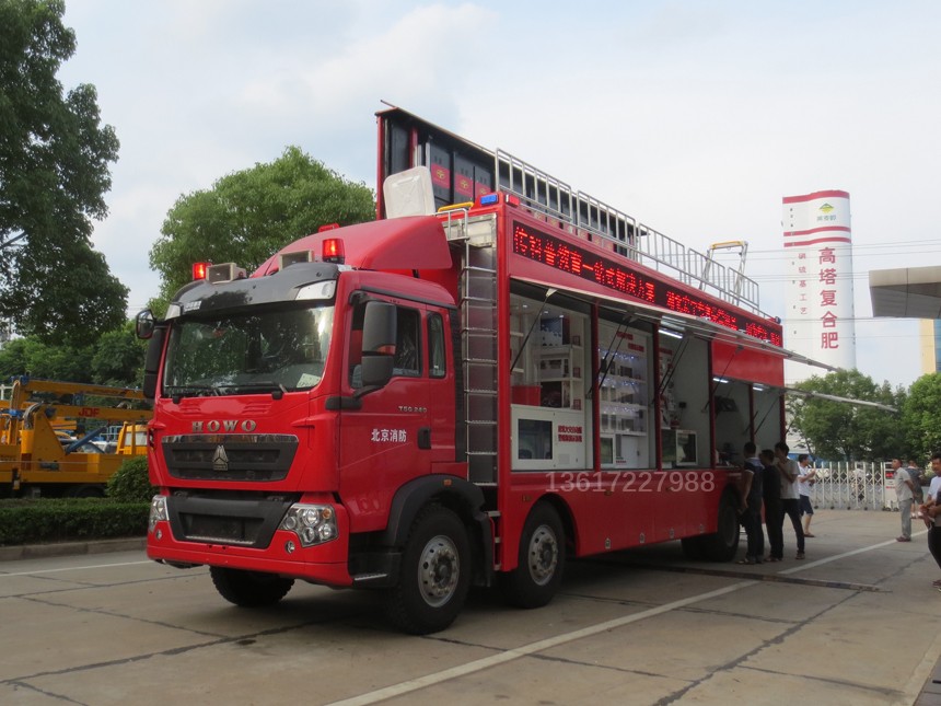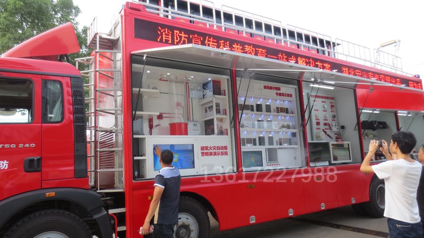 JDF5150TXFXC08型宣傳消防車采用汕德卡底盤為改裝平臺,具備獨立進行消防宣傳功能,宣傳車主要包含多媒體宣傳系統(tǒng)、消防知識查詢系統(tǒng)、廚房安全隱患排查系統(tǒng)、常見火災(zāi)虛擬演示系統(tǒng)、大屏模擬滅火演示系統(tǒng)、AR火災(zāi)態(tài)勢演練系統(tǒng)、VR火災(zāi)逃生訓(xùn)練系統(tǒng)。具備音、視頻宣傳教育和全方位互動體驗的特色,各宣傳教育互動體驗單元模塊,都是貼近國內(nèi)消防安全宣傳教育實際需要,引進國內(nèi)外前沿技術(shù)定向研發(fā)而成。 | |||
