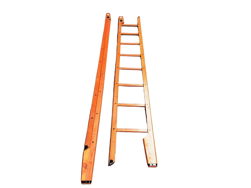 印釘緊固井呈平整半圓頭。整部梯子外表面光滑無毛刺,表面涂有不導電的涂料保護,竹表面呈桔黃色.單杠梯色,金屬零件鋅并涂有黑色磁漆。